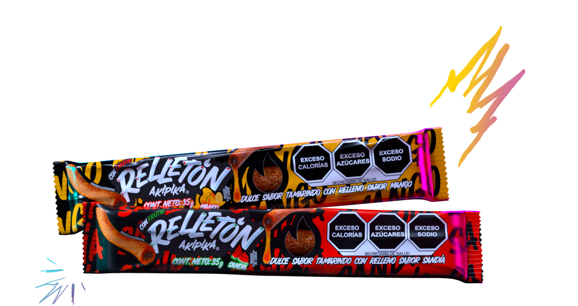 Relletón es un dulce de tamarindo con pulpa sólida, relleno de pulpa líquida con tonos frutales. En sabores de sandía y mango, cada mordida es un viaje entre lo espeso y lo jugoso, te dejará salivando. ¡Relletón el rey de los antojos!